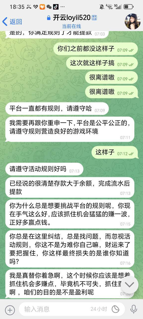 我好歹是V8级老玩家,贡献了那么多流水,这点钱现在都给不起了?客服和专属经理全是废物,只会转达“有关部门处理”,一点实际用都没有,跟人机一样。他们的最新理由更离谱:说我最近没游戏,所以必须存款大于账户金额再打流水。可上个月我刚输十几万进去,有截图为证,这借口找得也太牵强了吧。